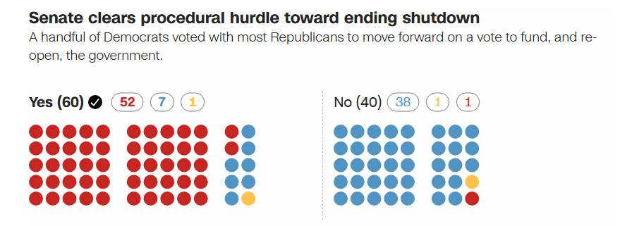 The Senate votes to reopen government... The bipartisan bill still needs to pass the House and get signed by President Trump before the government can reopen... The deal will extend government funding through January... Louis President Alberto Musalem said he expects the US economy to bounce back strongly early next year... President Donald Trump suggested creating a new, 50-year mortgage plan as ...