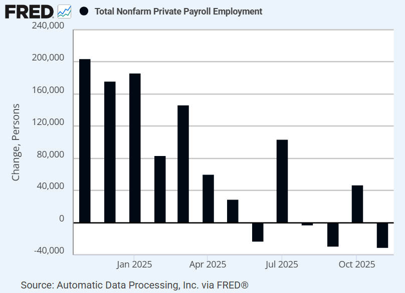 The report carries more weight these days for market sentiment due to the ongoing delay in official payrolls data from the government... By contrast, large firms (50 or more workers) reported a net gain of 90,000 in November... The ADP report âis too loosely correlated with the official data to be troubling,â advises Samuel Tombs, chief US economist at Pantheon Macroeconomics... Paired with...