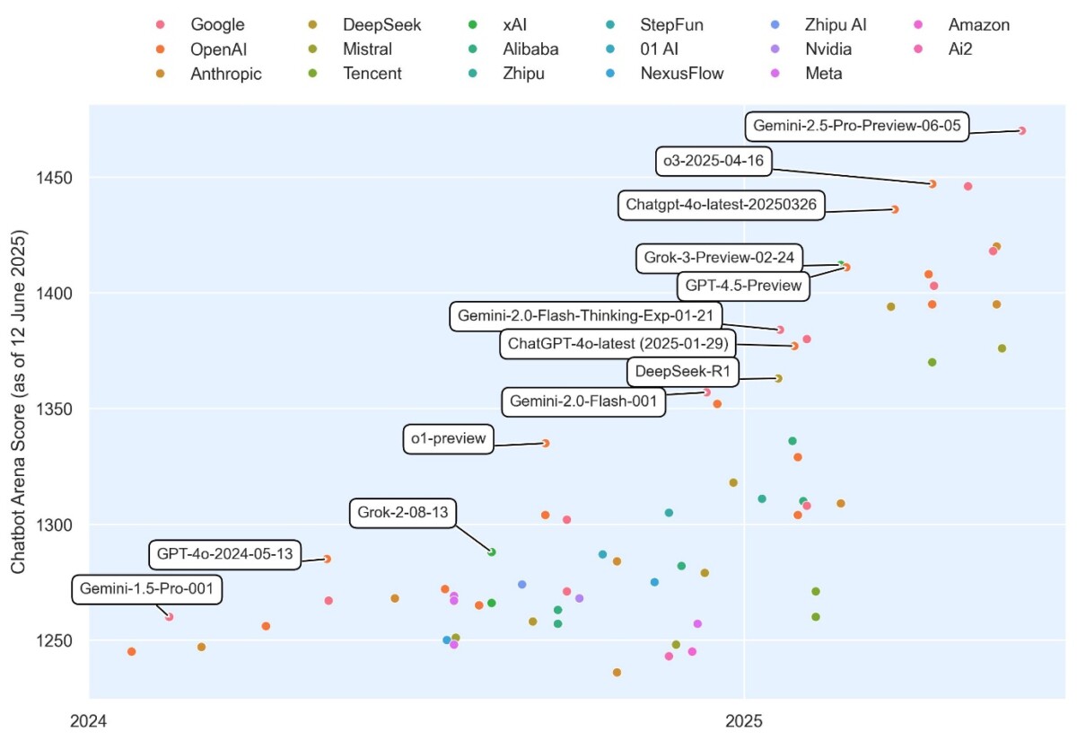 As shown in the following figure, not only are newer large language models launching more frequently, but their benchmark scores are also improving at twice the rate in early 2025 compared to 2024. This accelerating pace of innovation makes platform engineering especially important, enabling organizations to quickly adopt newer, more capable models, integrate the latest advancements, and continuously enhance their applications.