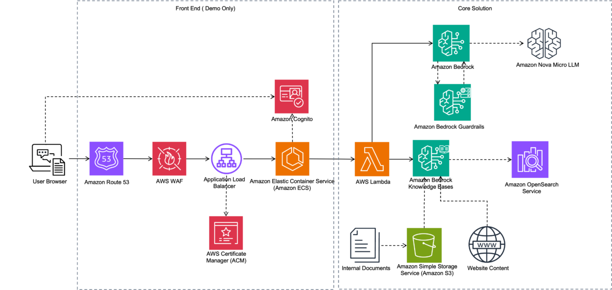 This post demonstrates how to solve this challenge by building an AI-powered website assistant using Amazon Bedrock and Amazon Bedrock Knowledge Bases. This solution is designed to benefit both internal teams and external customers, and can offer the following benefits: