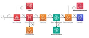 - Steps 1 and 2 – To start, a user query and corresponding image are routed through an Amazon API Gateway connection to an AWS Lambda function, which serves as the processing and orchestrating compute for the overall process.