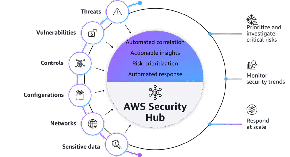 - Streamlined security response and automation capabilities: Security Hub enhances your security operations by enabling streamlined response capabilities. It seamlessly integrates with your existing ticketing systems to help facilitate efficient incident management.