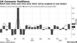 The latest run of upbeat numbers this week started with encouraging inflation news and that disinflation continued in July. Yesterday’s data on jobless claims and retail sales added a positive spin to the analysis. Some might dismiss the updates isolated figures, but as CapitalSpectator.com reported last week (and in previous weeks): recession risk remains low when measuring conditions via a diversified set of indicators.
