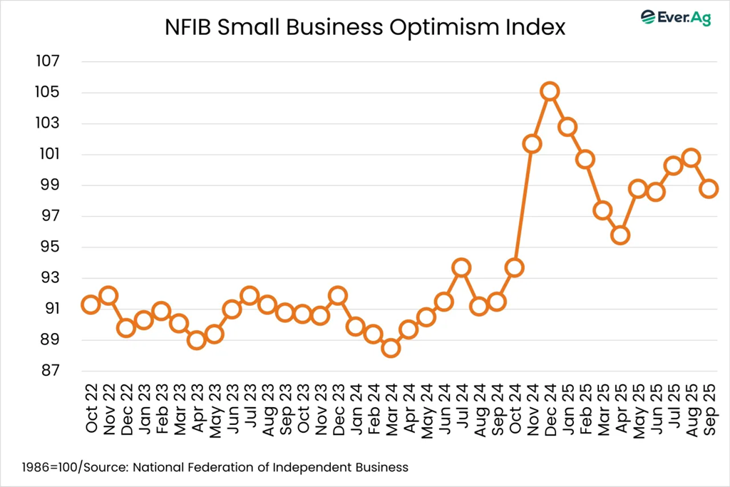 US small business sentiment in September weakened for the first time in three months, according to NFIB… The IMF slightly upgraded its outlook for global and US growth in its its latest World Economic Outlook report, citing a smaller-than-expected increase in the US tariffs… Most US consumers se…