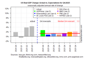 Meantime, the early reaction in financial and commodity markets to Maduro’s toppling remains muted. Let’s start with the oil market. The price of crude was trending lower before Saturday’s raid, and in the first two trading days following the attack the price slide still looks intact. The US benchmark (West Texas Intermediate) closed just below $57 a barrel on Tuesday (Jan. 6), close to a five-year low.
