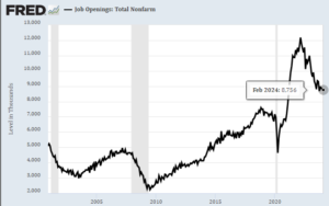 The Atlanta Fed’s GDPNow model, for instance, is estimating (as of Apr. 1) this month’s initial Q1 GDP report will show output expanded 2.8% (real seasonally adjusted annual rate). Although that’s well below Q4’s pace, a 2.8% increase (if correct) indicates a solid rise, and one that implies that rate cuts may be premature.