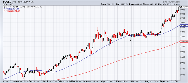 Gold rallies to yet another record high at a time of growing uncertainty on multiple fronts...The ongoing US government shutdown is fueling uncertainty, economists advise... “It adds to risk and uncertainty at a most inopportune time,” said Mark Hamrick, senior economic analyst at Bankrate... “Strong ETF demand remains key, driven by ‘FOMO’ and eroding trust in traditional safe havens...