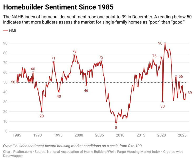 US homebuilder sentiment edged up in December, but continues to reflect negative sentiment about the market outlook... “The recent easing of monetary policy should help builder loan conditions at the start of 2026,” said NAHB Chief Economist Robert Dietz... “However, builders continue to face supply-side headwinds, as regulatory costs and material prices remain stubbornly high......