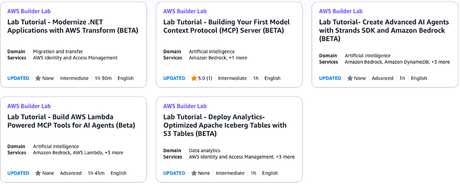 Are you ready to take your AWS skills to the next level with complete control over your learning environment? We’re excited to announce the new set of Lab Tutorials on AWS Skill Builder... This innovative learning experience allows you to build comprehensive cloud solutions in your own AWS account, while following expert guidance from AWS subject matter experts through the integrated learning pl...