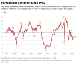 Meanwhile, relative strength in foreign stocks (VEA) vs. US shares (VTI) continues, but recent trading activity shows the trend has flatlined lately, raising questions about whether offshores equities will continue to outperform in 2026.